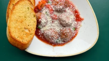 Italian starter consisting of a ball of rice , tomato sauce , meat , mozzarella cheese all coated with bread crumbs and then deep fried . Four balls per portion