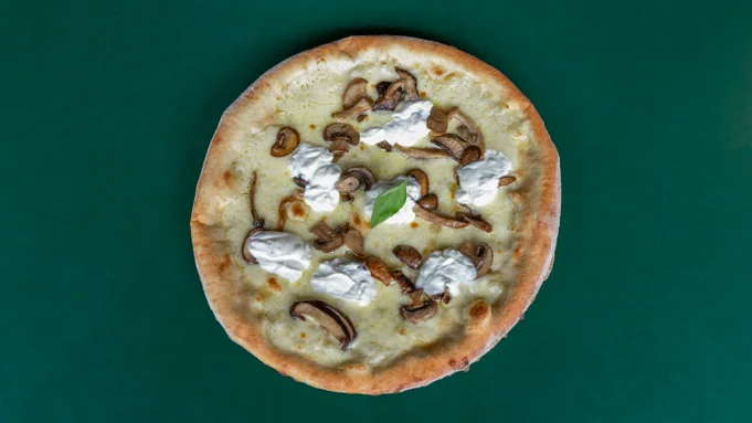 Fior di latte mozzarella , Wild mushrooms , ricotta cheese and topped with truffle oil.